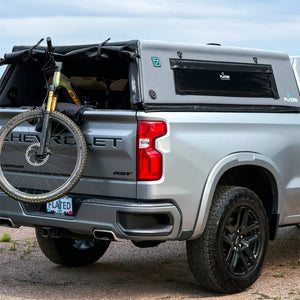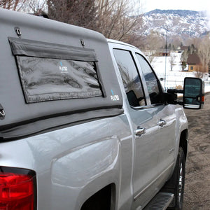 The FLATED® Air-Topper® comes with 2 side tinted windows, 2 side screens, 1 rear tinted window, and 1 clear pass through front cab window. All are removable with a military grade hook and loop closure system and the rear window can be accessed through the YKK zippers.