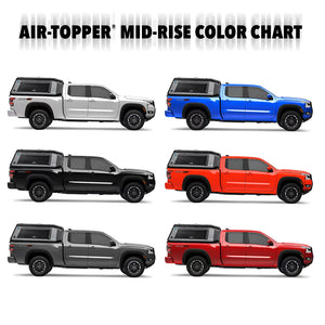 The mid-size long bed Air-Topper® was designed to 6' bed Toyota Tacomas, Nissan Frontiers, GMC Canyons, Ford Rangers, and Chevy Colorados.